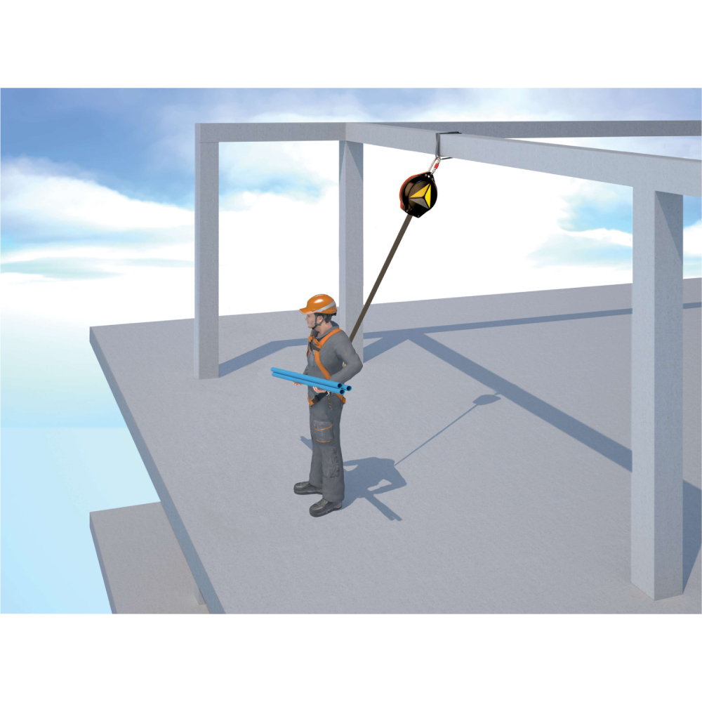 Este anticaídas retráctil está diseñado para ofrecer protección confiable en trayectos de hasta 6 metros, tanto en uso vertical como horizontal. Fabricado en ABS y cincha de poliéster, cuenta con un indicador de caída integrado para mayor seguridad. Soporta hasta 128 kg y tiene una vida útil de 10 años desde su fabricación.