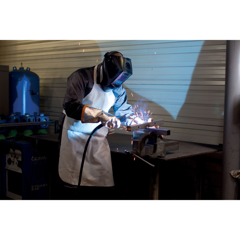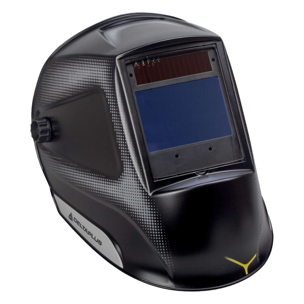 Máscara de soldador con visor de policarbonato monobloque, tintado regulable hasta tono 13, ideal para trabajos en exteriores. Diseño ligero y ergonómico con visor recto y clase óptica 1, que garantiza protección visual precisa y cómoda.