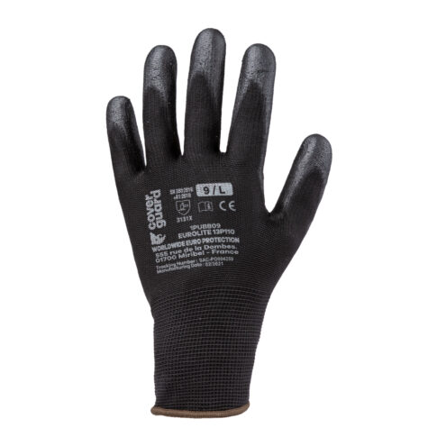 Guantes ligeros y cómodos en punto sin costuras de poliéster negro, con recubrimiento de poliuretano (PU) en la palma que ofrece un tacto tipo “segunda piel” para máxima destreza. Transpirables y ergonómicos, ideales para tareas de precisión en ambientes secos. Presentación en envase individual para fácil exhibición.