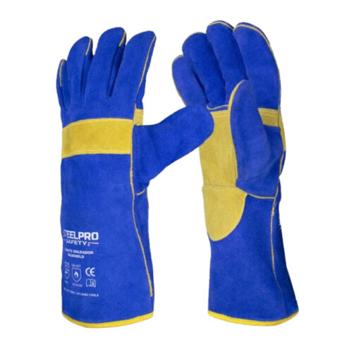 El guante de cuero carnaza azul royal con refuerzo en palma y nudillos en carnaza amarilla está diseñado para ofrecer una protección superior contra calor, abrasión y chispas, sin comprometer la comodidad ni la destreza manual. Ideal para trabajos de soldadura y entornos de alto riesgo térmico.