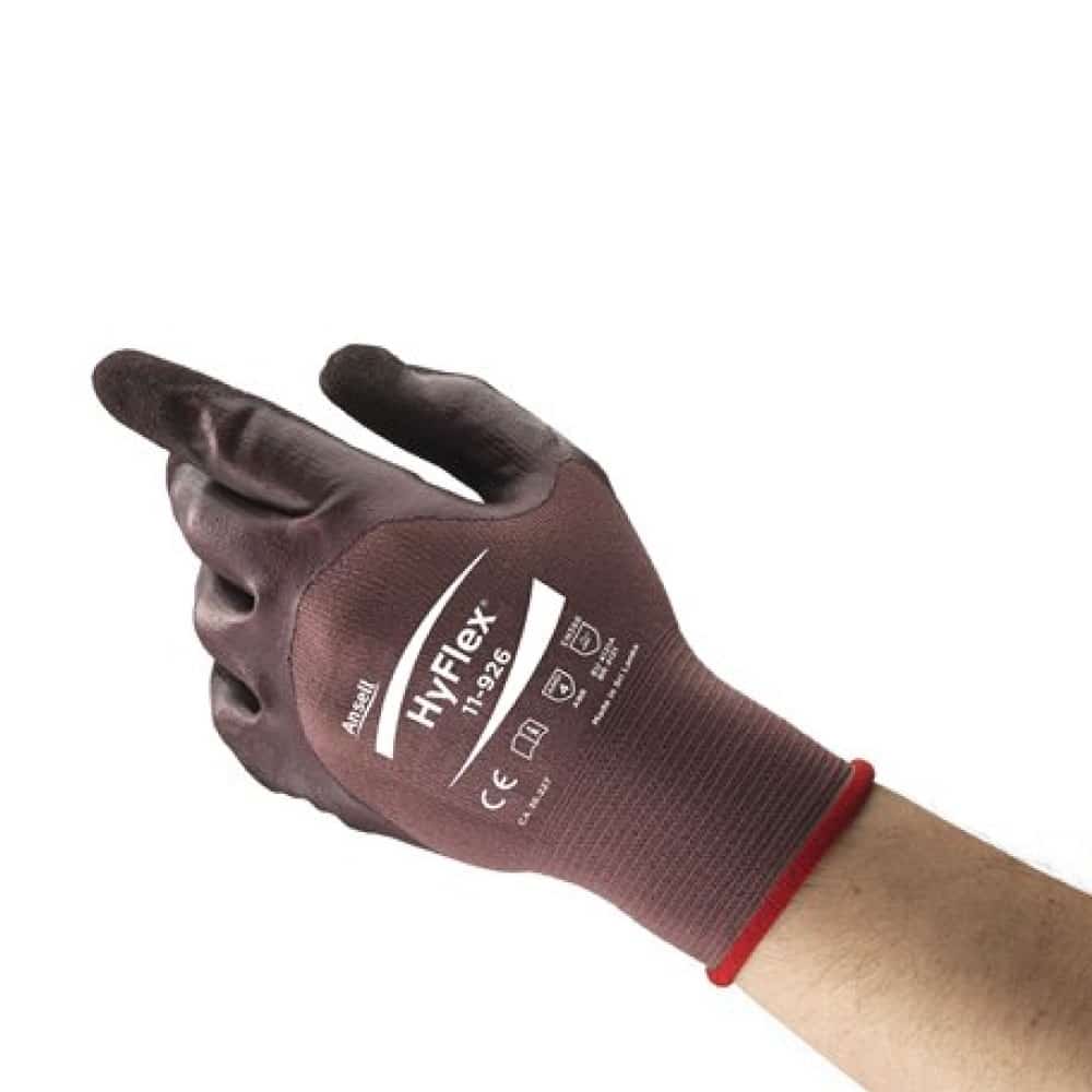 - HyFlex® 11-926 incorpora tecnología de agarre patentada por Ansell que reduce la pérdida de agarre en entornos dinámicos