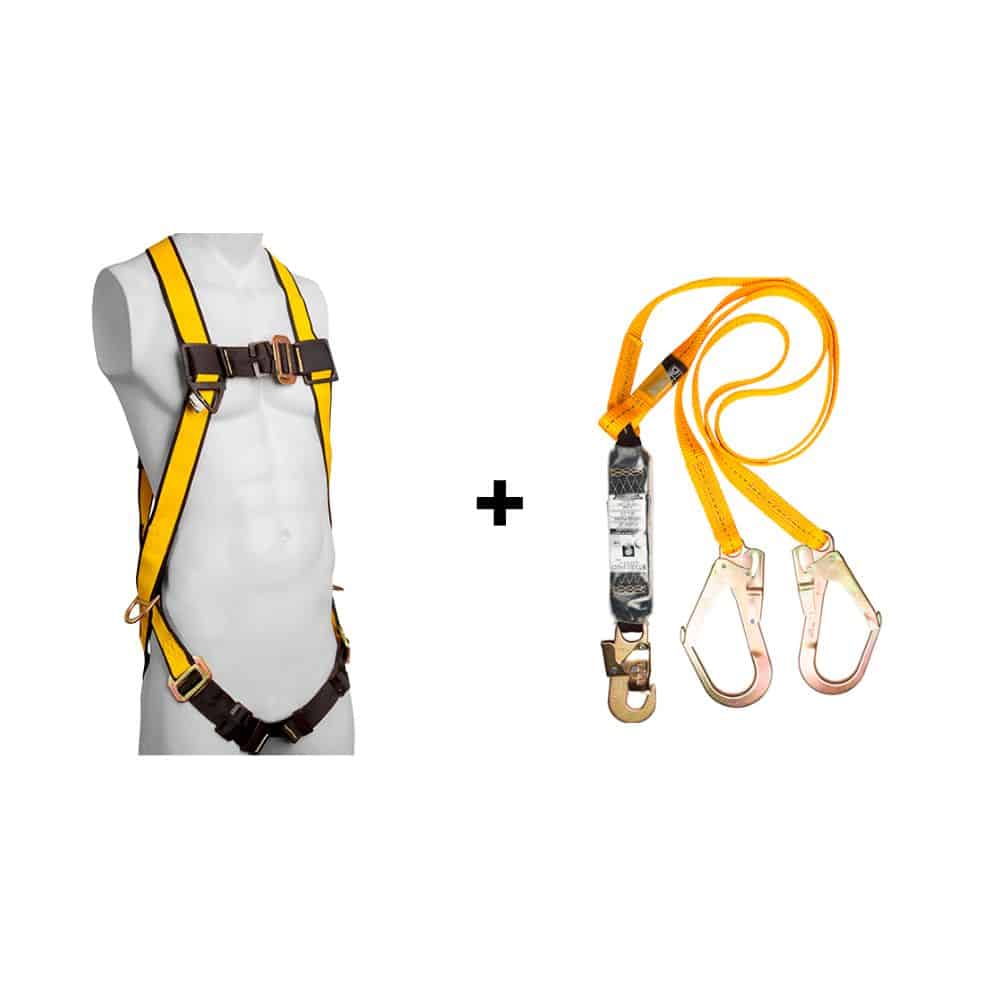 KIT ARNÉS DE 3 ARGOLLAS + LINEA DE VIDA DOBLE ECONÓMICA STEELPRO