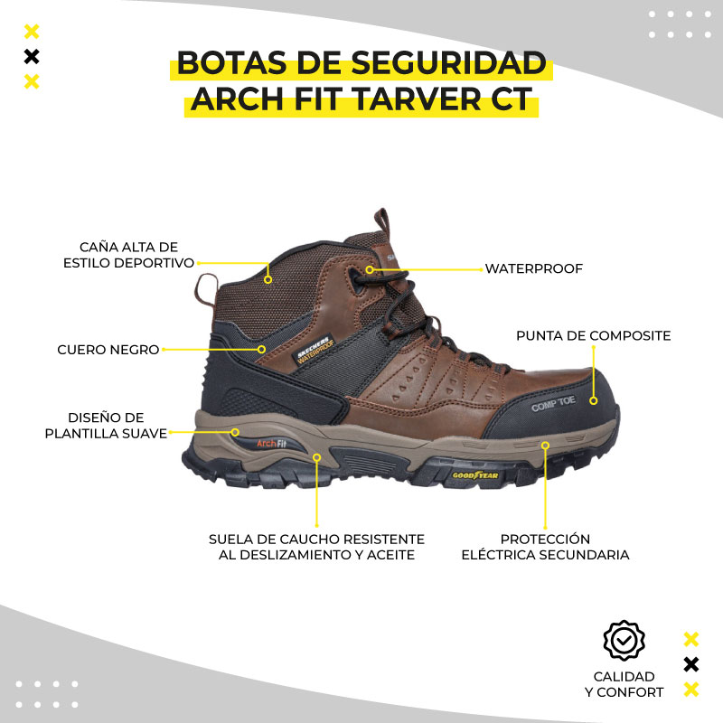 La protección y comodidad que necesitas durante todo el día se dan de manera simple con Skechers Work™: Arch Fit® Tarver CT.